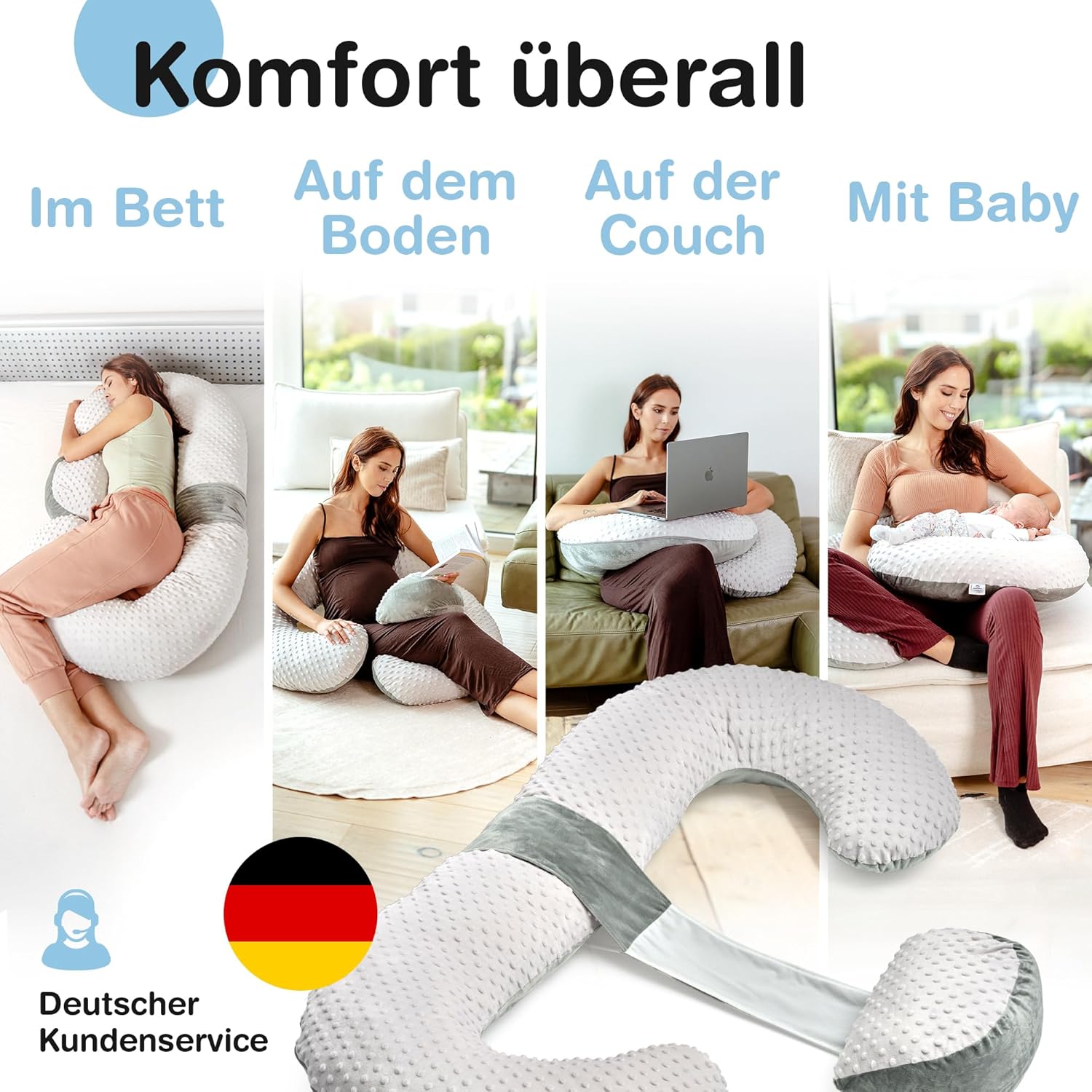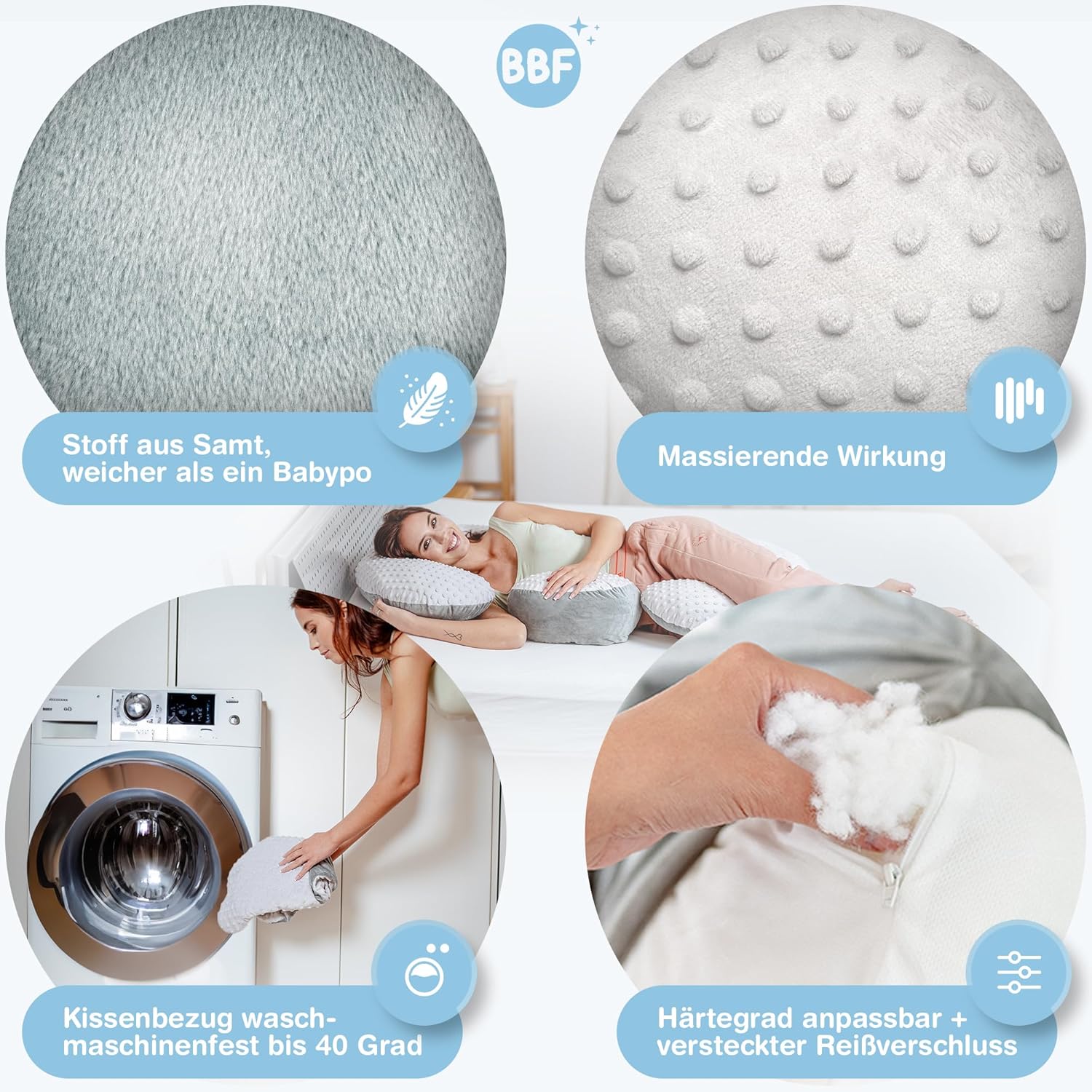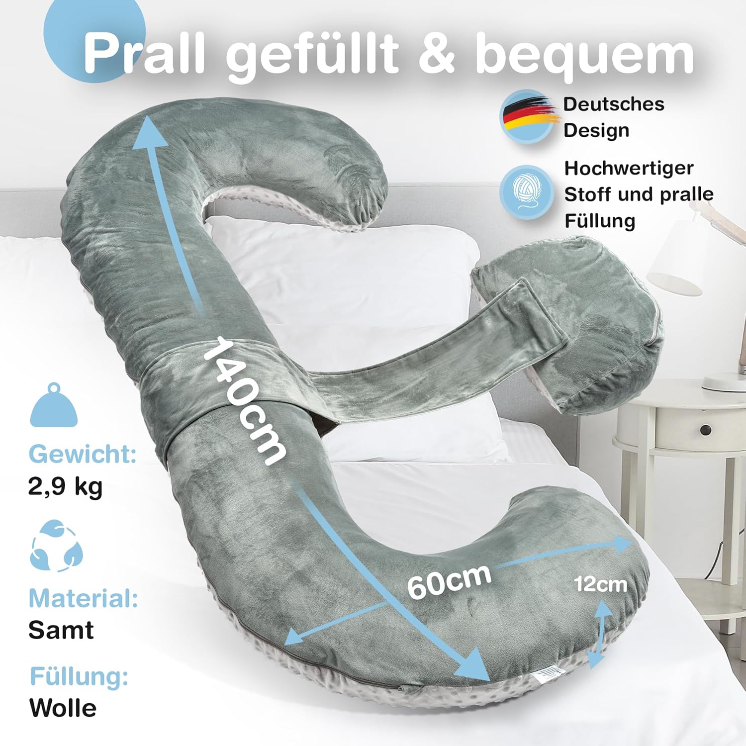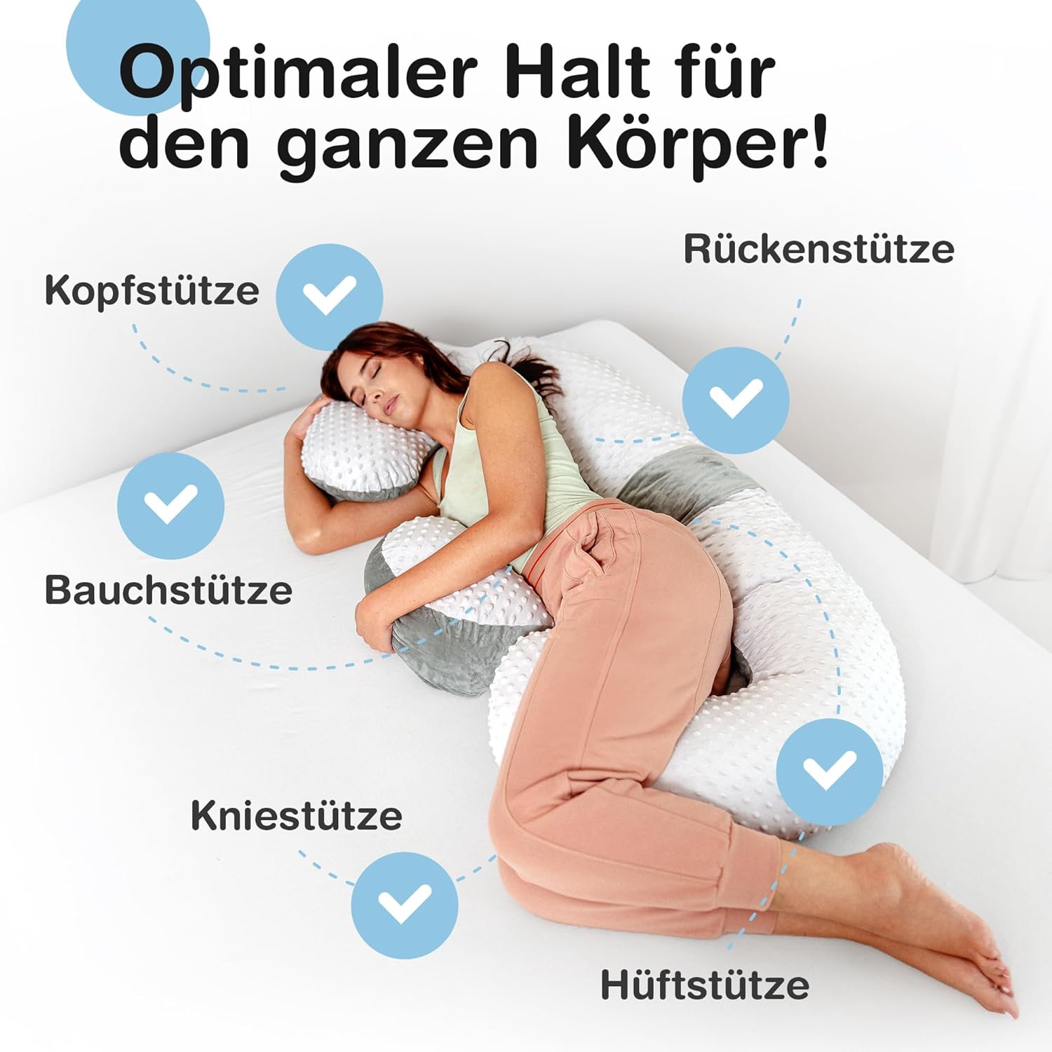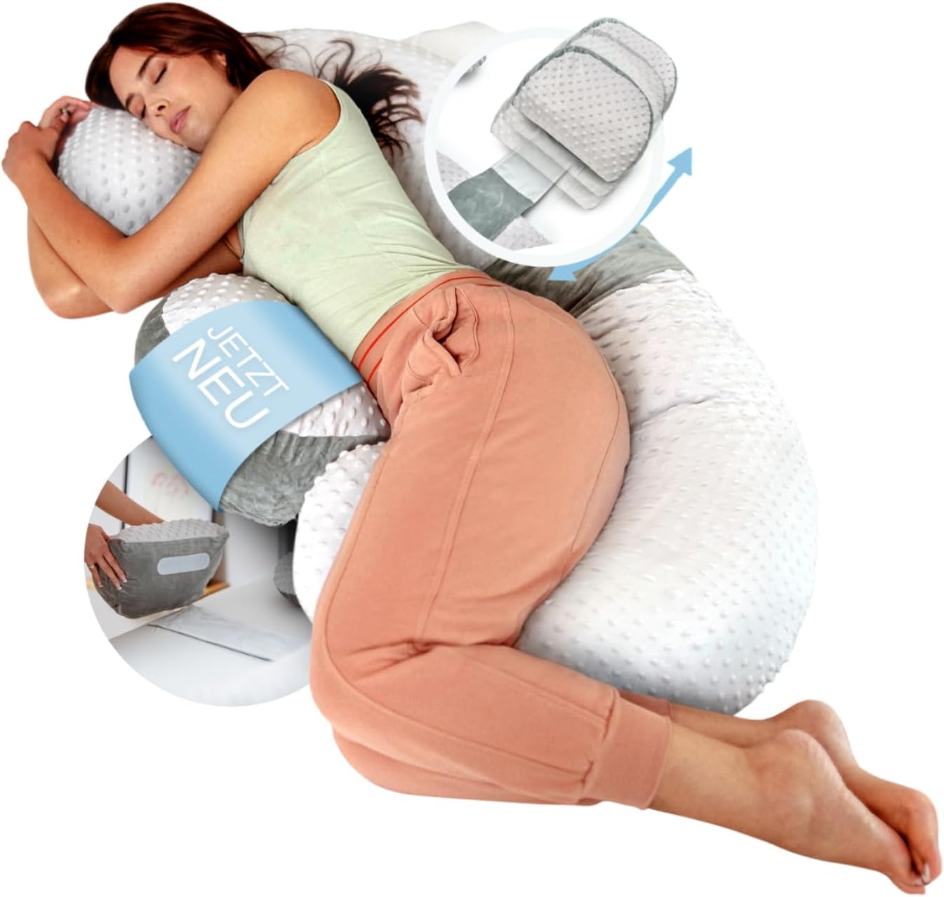 Durch die spezielle Form des Kissens schmiegt sich das Kissen an deinen gesamten Körper und gibt dir die Entlastung die du brauchst.