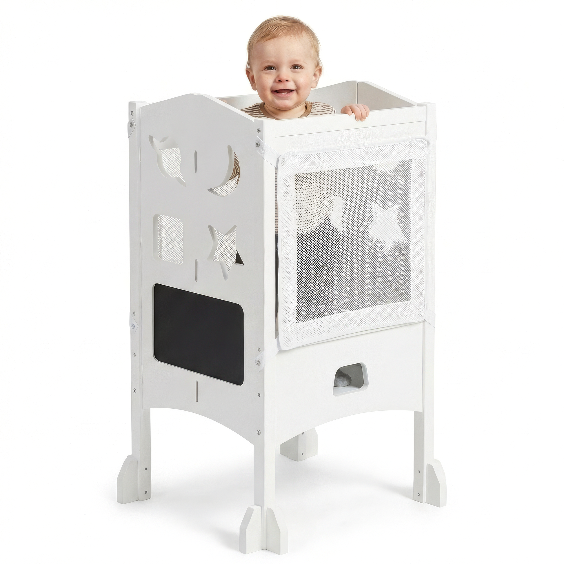 Klappbarer Lernturm mit 360° Sicherheitsnetz für Rundumschutz